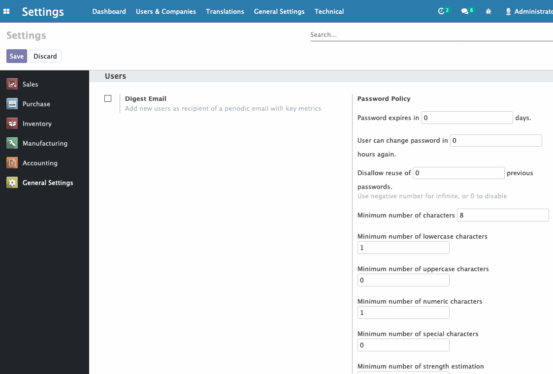 如何在odoo里设定密码规则